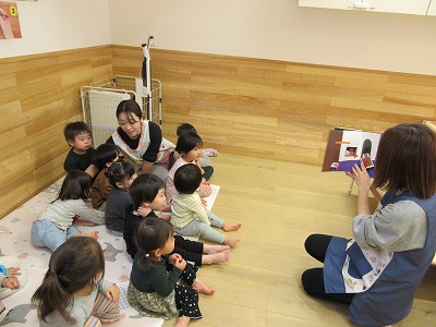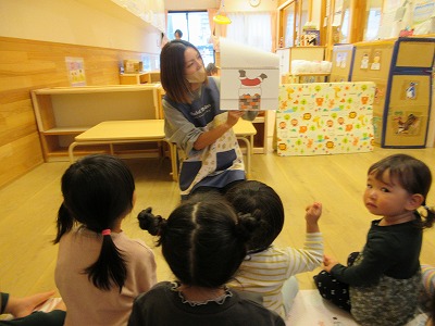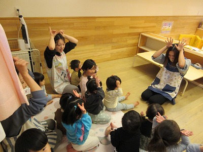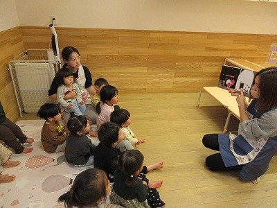 とんとんとんとんクリスマスの手遊びや絵本「まどからのおくりもの」も楽しみました。