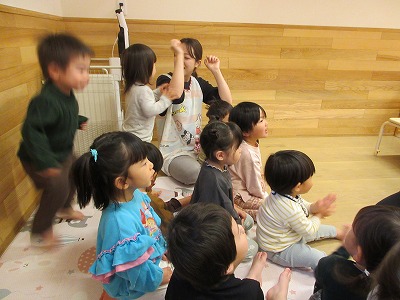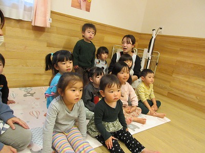 みんなで、あわてんぼうのサンタクロースの歌を歌いました。