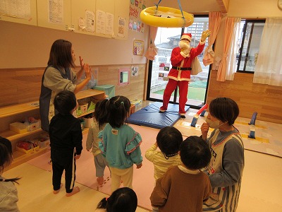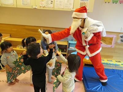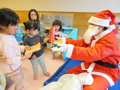 驚いたり、喜んだり、様々な表情を見せてくれました。サンタさんにプレゼントをもらってうれしそうな子どもたちでした。