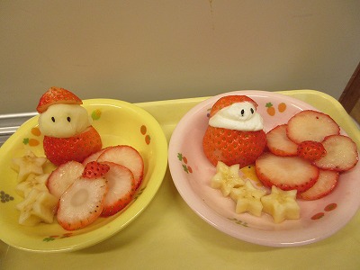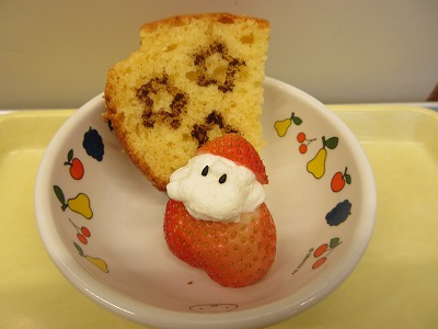 今日は、給食やおやつにも、トナカイやサンタさんが登場しました。